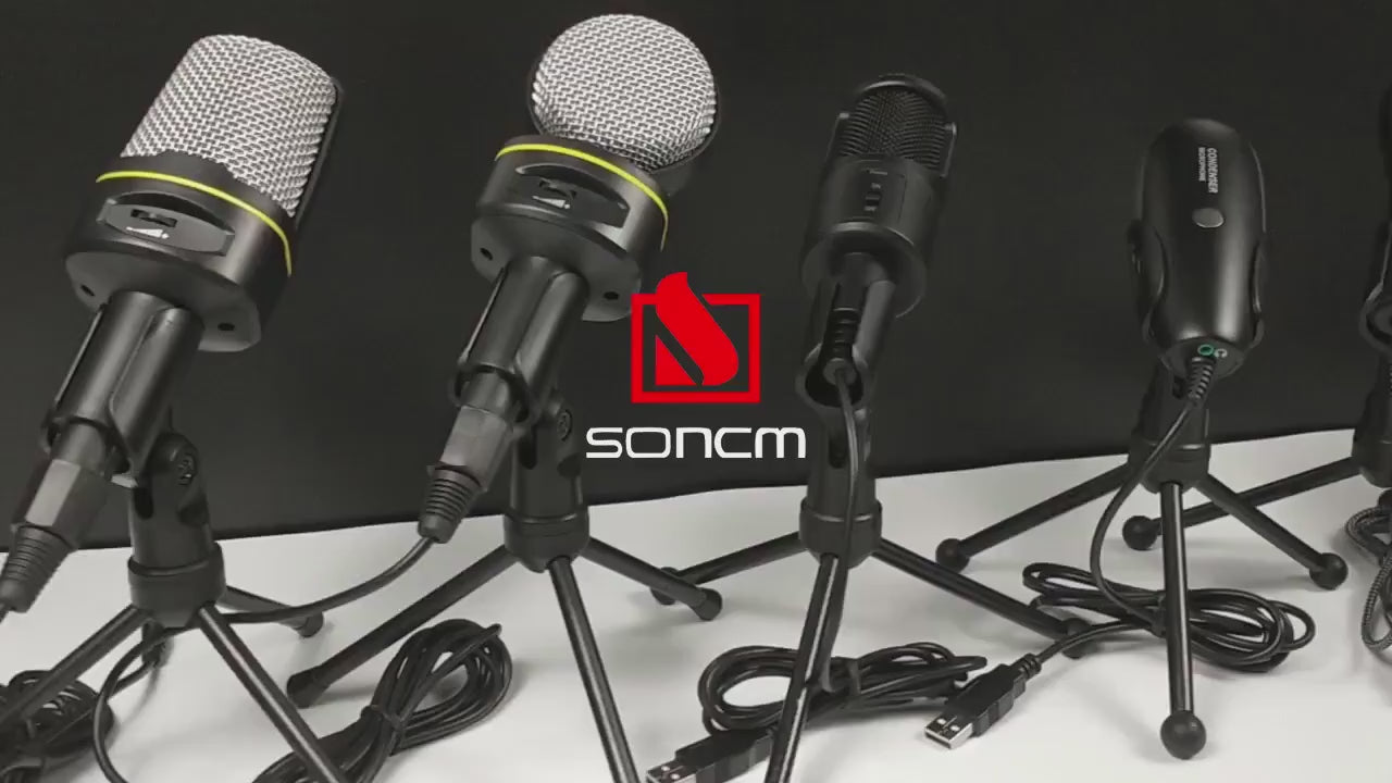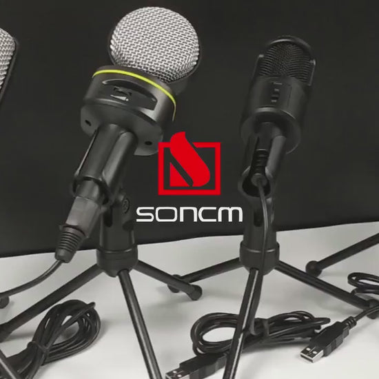 Compact plug‑and‑play condenser mic for PC/laptop use. Comes with a small desk stand and 3.5 mm audio jack, ideal for online chatting, Skype/Zoom calls, gaming, and basic vocals.